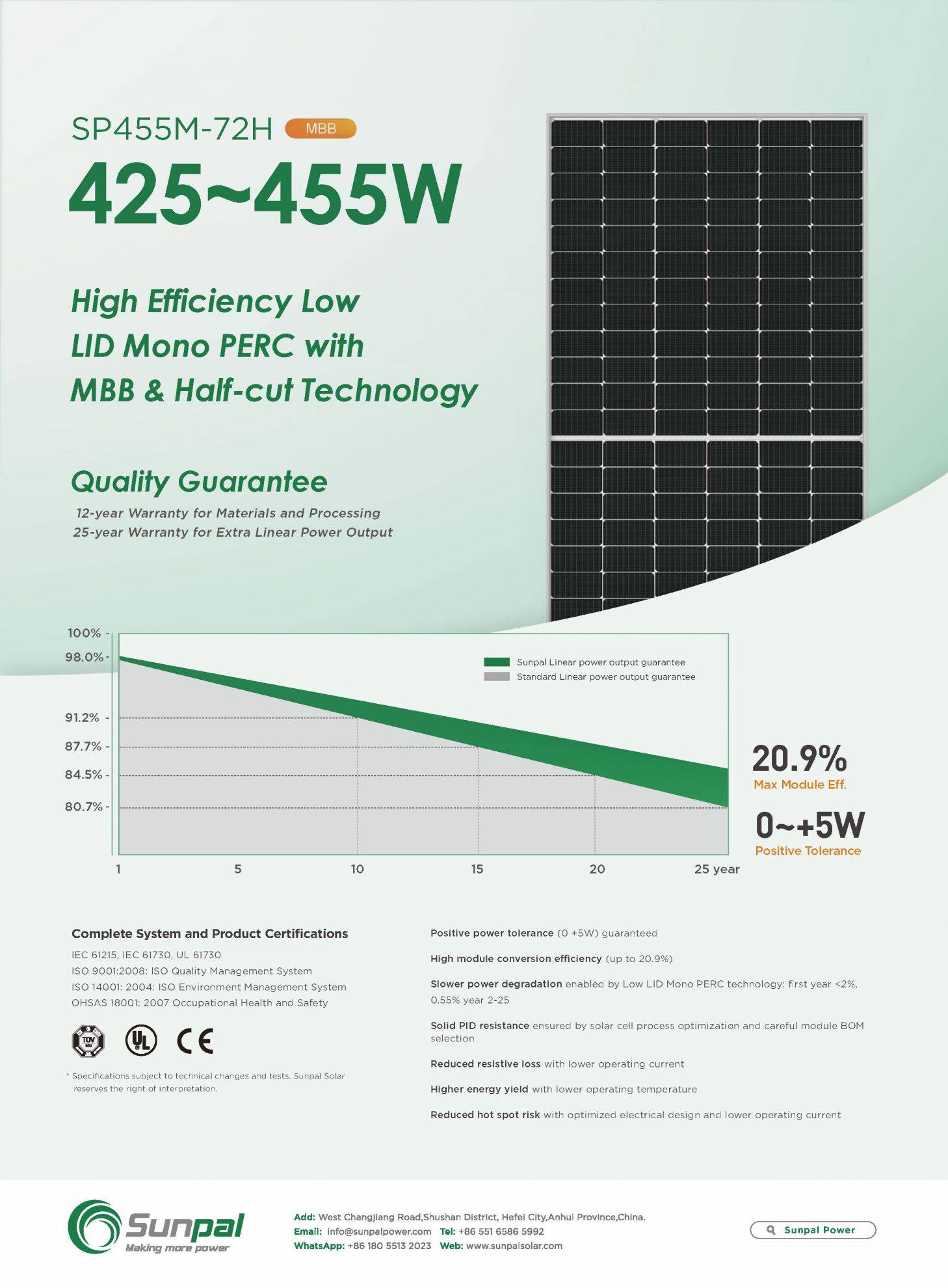 | Solární panel Sunpal SP450M-72 H Foll BlackRef: SP002 | Hmotnost: 23.50 Kg / ks | Skladem: Více než 10 ks Cena s DPH: 4792 Kč Prodejní cena bez DPH: 3960 Kč Doporučená cena: 5324 Kč Nejnižší cena v předchozích 30 dnech:: 2822 Kč Ušetříte: 532 Kč (10 %) Zaplatíte víc o:: 1970 Kč (+70 %) U produktu je aplikována sazba 21% DPH |