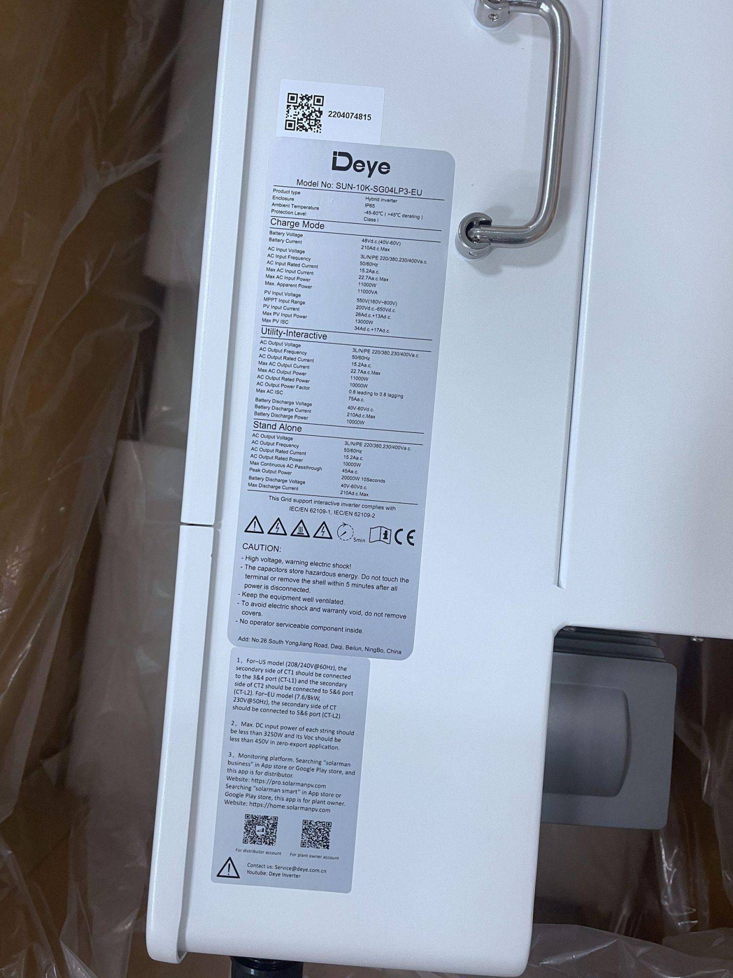 | Deye Hybrid inverter 10 kWh SUN-10K-SG04LP3-EURef: MND01 | Hmotnost: 35.00 Kg / ks | Skladem: 5 ks SUN 5/6/8/10/12K-SG je zcela nový třífázový hybridní střídač s nízkým napětím baterie 48 V, který zajišťuje bezpečný a spolehlivý systém. Díky kompaktnímu designu a vysoké hustotě výkonu podporuje tato řada poměr 1,3 DC/AC, což šetří investice do zařízení. Cena s DPH: 27443 Kč Prodejní cena bez DPH: 22680 Kč Doporučená cena: 76230 Kč Nejnižší cena v předchozích 30 dnech:: 27443 Kč Ušetříte: 48787 Kč (64 %) U produktu je aplikována sazba 21% DPH | ||||||||||||||||||||||||||||||||||||||||||||||||||||||||||||||||||||||||||||||||||||||||||||||||||||||||||