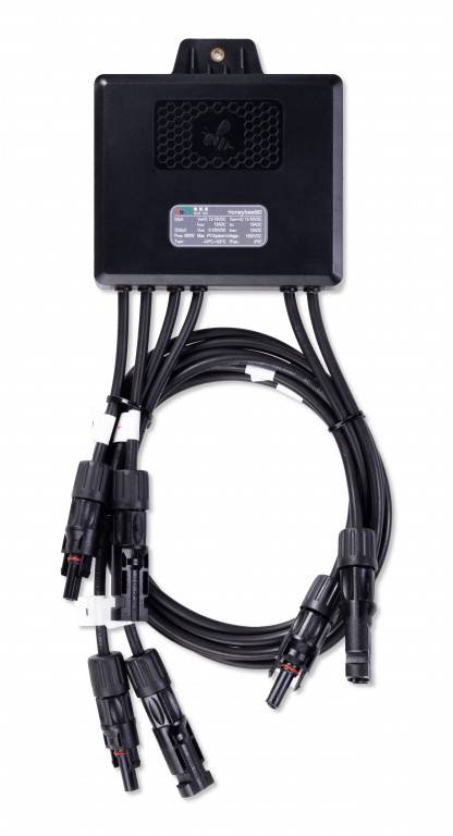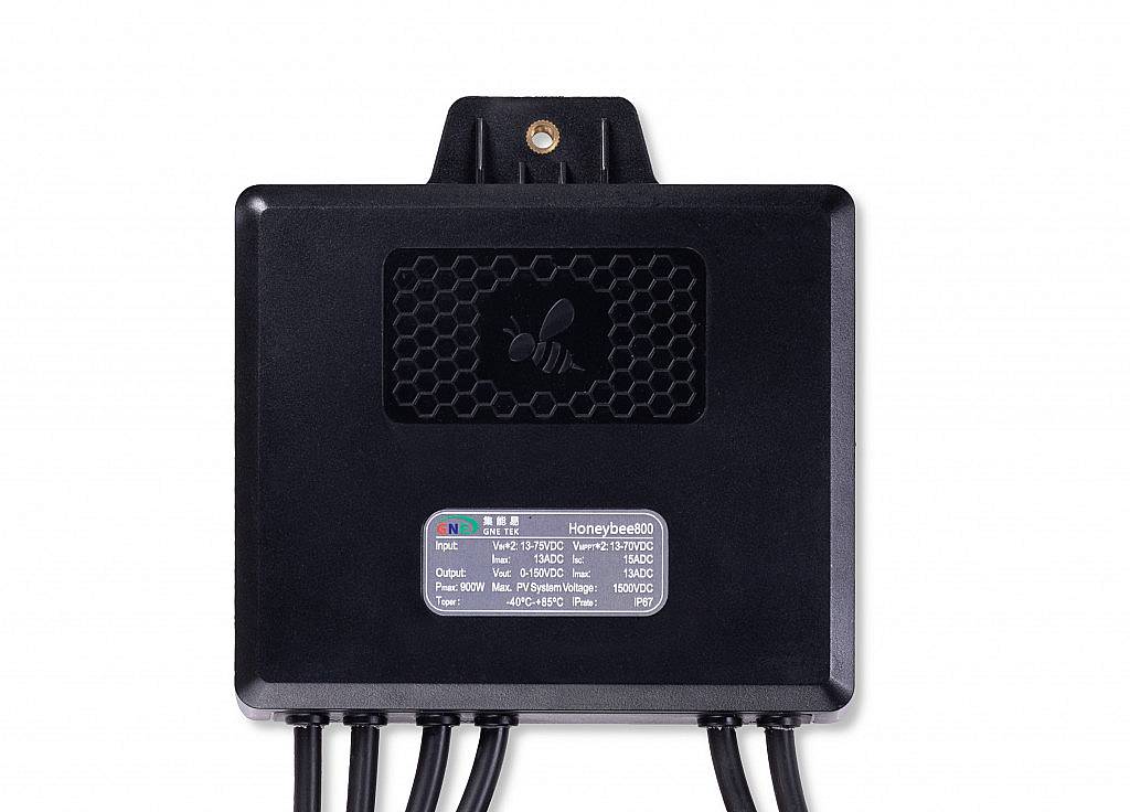 Optimizér Honeybee 800 je určen pro dva fotovoltaické panely s maximálním výkonem 400Wp. Optimizér zajišťuje maximální výnos z jednotlivého panelu vrámci celého stringu. Zvyšuje účinnost instalované elektrárny při částečném zastínění nebo vlivem překážek ve slunečním svitu. Optimizér zároveň zajišťuje zvýšenou bezpečnost díky vestavěné fuknce vzdáleného vypnutí v případě požáru nebo nenadálé události. Funkce se aktivuje přes webové rozhraní nebo pomocí stisknutí tlačítka na monitorovacím rozhraní Beehive. Parametry: